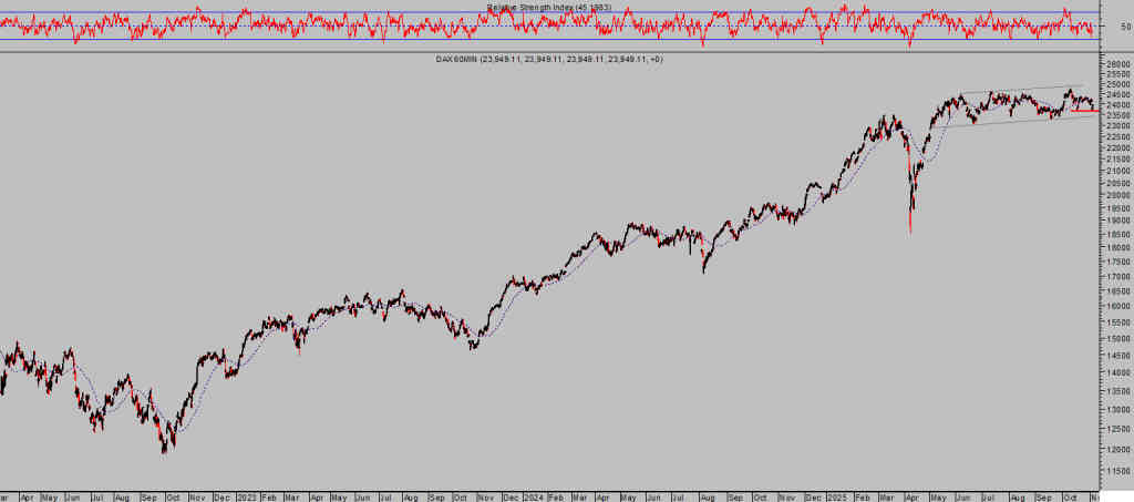 Las bolsas europeas también retrocedieron posiciones ayer y tampoco causaron daño técnico de mayor importancia, aún.
