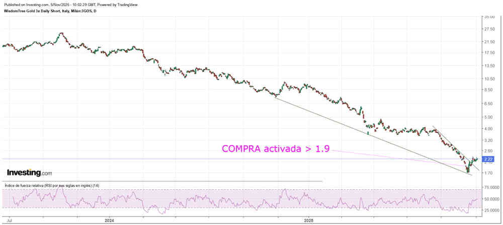 El Oro detuvo su imparable tendencia alcista hace dos semanas cuando el día 20 de octubre alcanzó máximo histórico en $4.398 por onza, desde entonces está inmerso en un proceso correctivo o saludable limpieza de posiciones que está generando interesante rentabilidad a través de la siguiente estrategia.