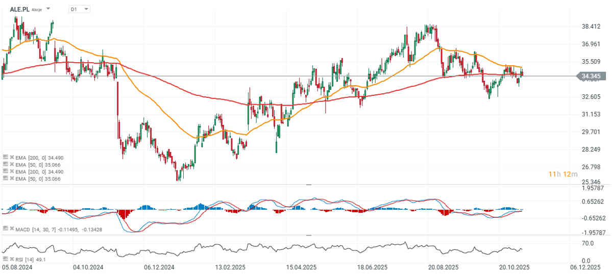 Técnicamente, la acción se encuentra defendiendo una importante zona de soporte en torno a los 34 PLN, definida por la EMA de 200 días (línea roja). Un repunte exitoso en este nivel podría confirmar el regreso del impulso alcista en las empresas líderes de tecnología minorista de Europa Central y Oriental.
