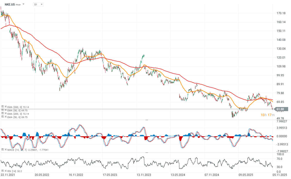 Para añadir más intriga, la decisión de la Corte Suprema de EE. UU., prevista para enero de 2026, sobre los cambios en la política arancelaria anunciados por Donald Trump, podría favorecer a las empresas muy expuestas a los aranceles de importación, lo que potencialmente impulsaría las perspectivas de rentabilidad de Nike. Con un sólido valor de marca y un impulso estacional favorable, es posible que las acciones pronto se recuperen.