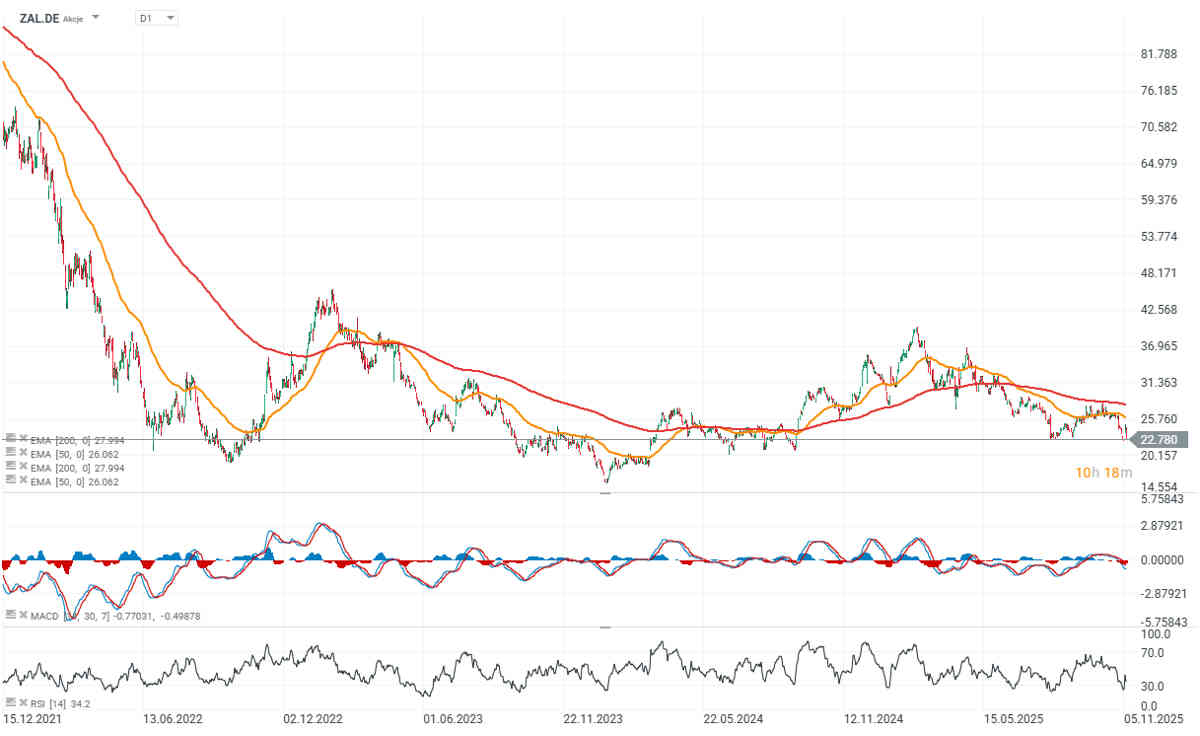 Zalando, que en su día fue una de las joyas de la corona del crecimiento europeo, ha tenido dificultades desde 2021, incapaz de revertir su prolongada tendencia a la baja. Aun así, la compañía conserva una de las posiciones de marca más sólidas en la moda online europea, con millones de clientes activos y una potente red logística.