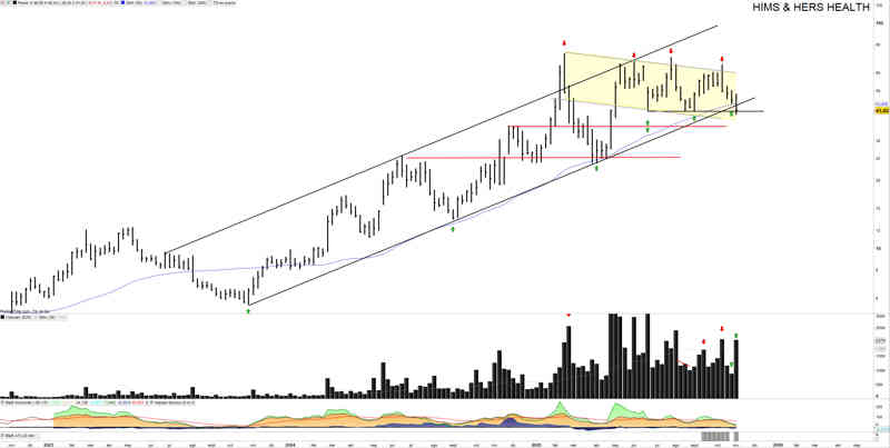 Se encuentra en zona clave, base de canal alcistas largo plazo y soporte 41$.