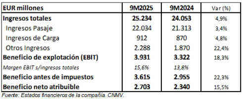 . IAG presentó el pasado viernes sus resultados correspondientes a los nueve primeros meses del ejercicio (9M2025), de los que destacamos los siguientes aspectos: