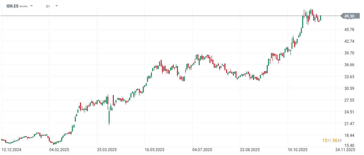 Las acciones de Indra suben un 185% en este 2025 y un 200% en los últimos doce meses.