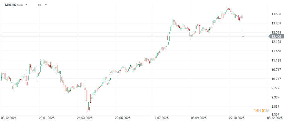 Las acciones de Merlin (MRL:MC) se desploman más de un 5% a pesar de haber reportado unos buenos resultados con crecimiento en todas sus líneas de negocios. La compañía avanza en la transformación de su negocio pero con cifras sólidas, pero la caída del 2,8% en el tercer trimestre del AFFO no ha gustado a los inversores.