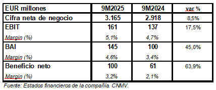 Margen EBIT s/cifra negocios: 5,1% (vs 4,7%; 9M2024)