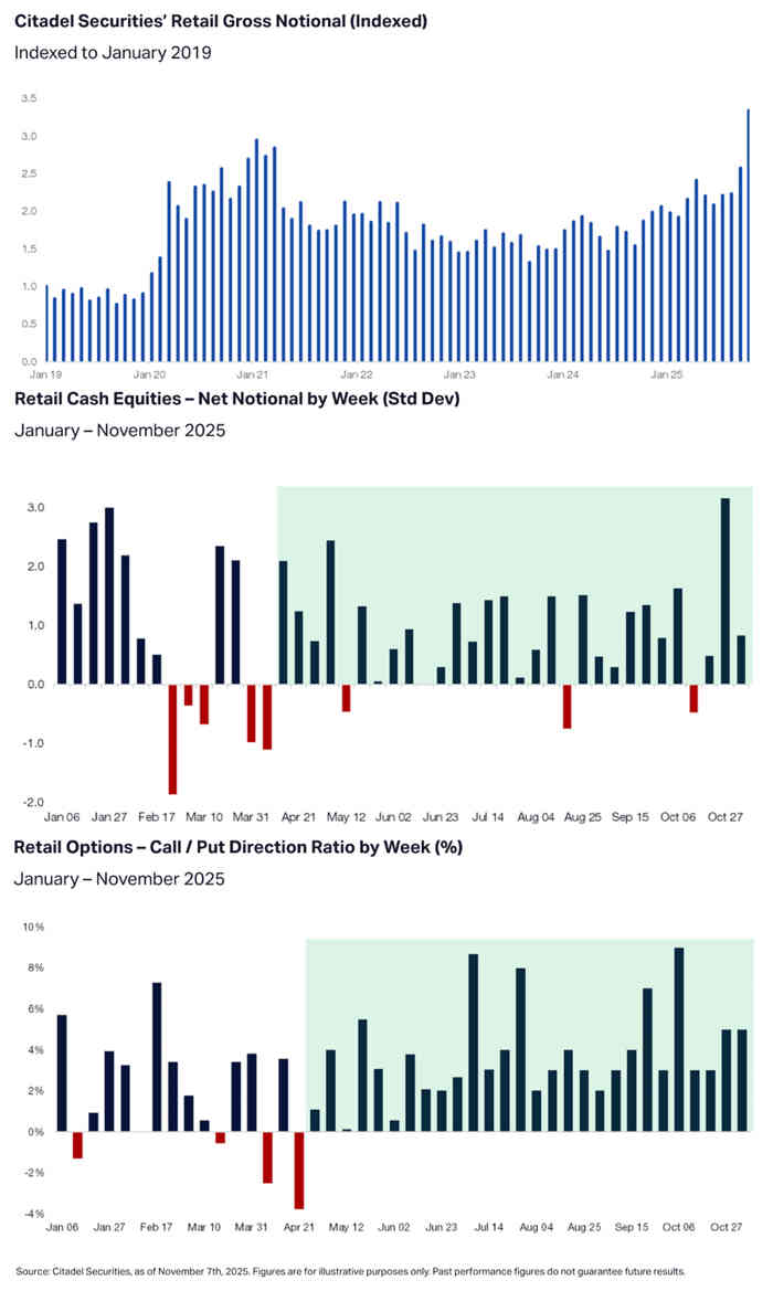 Además, su participación vía opciones, analizada en distintos posts es también histórica, como lo es la compra de ETFs apalancados que ha aumentado muy abruptamente en el último año alcanzando niveles estratosféricos.