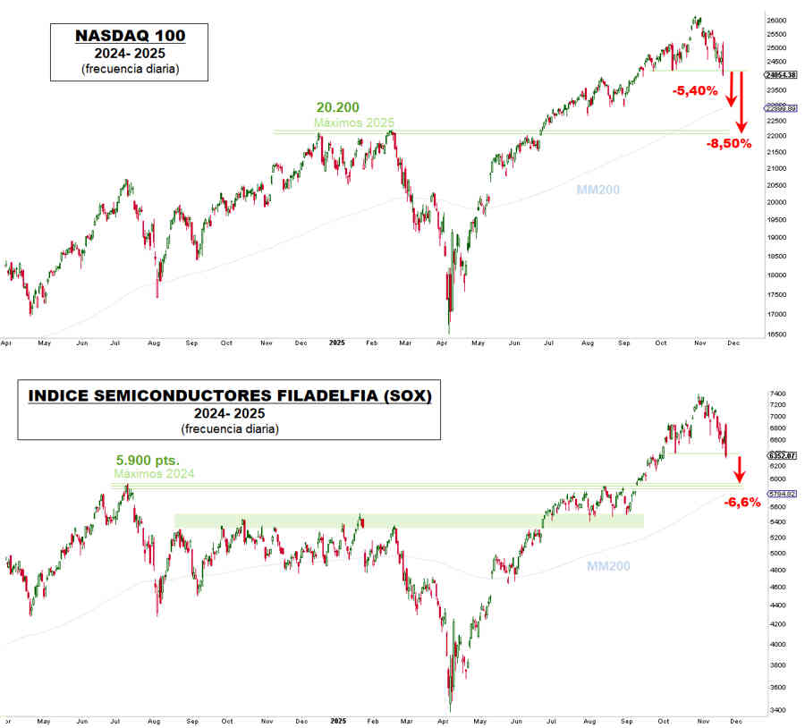 La cuestión ahora es, a nuestro juicio, doble. ¿Hemos empezado una corrección importante o estamos ante una oportunidad de compra de cara a diciembre? ¿cuáles son los siguientes niveles importantes de soporte?