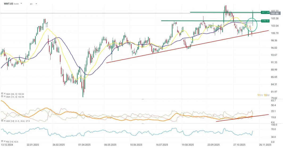 Las acciones de Walmart han superado dos hitos alcistas. El primero de ellos es que ha roto tanto su media móvil de 14 sesiones como la de 28 sesiones.
