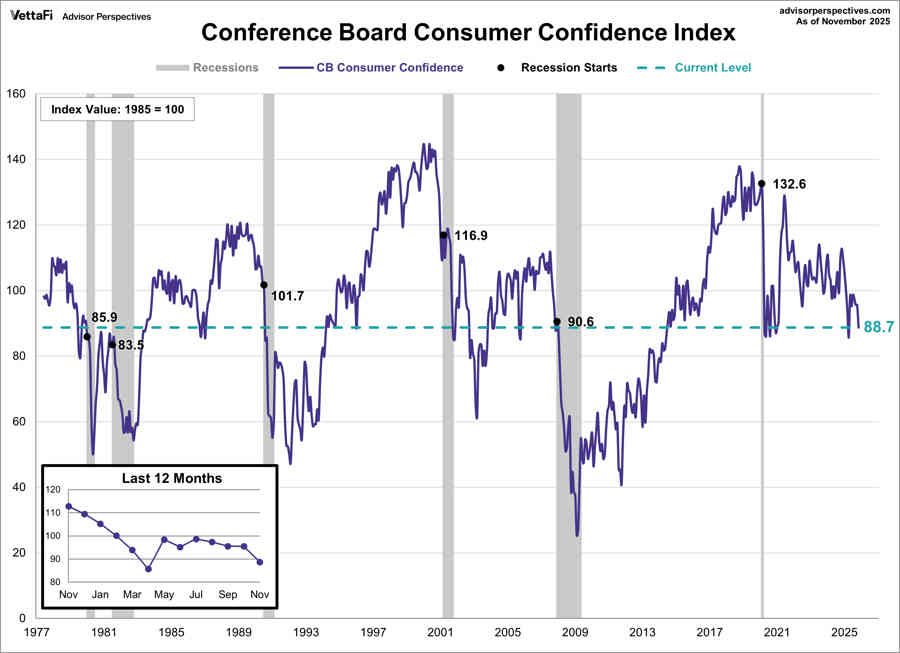La Confianza del Consumidor según encuestas del Conference Board  ha caído por cuarto mes consecutivo, perdiendo 6.8 puntos hasta 88.7, frente al 93.5 esperado por los expertos. Se trata del nivel más bajo de los últimos 7 meses y se encuentra en el percentil 33 de la serie histórica.