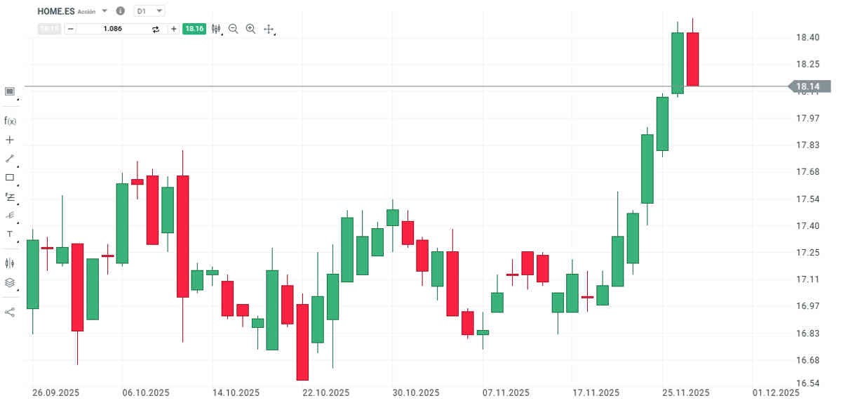 Durante la sesión bursátil de hoy, fecha de inicio del periodo de aceptación, las acciones de Neinor retroceden un 1,4%, mientras que en el conjunto del 2025 se revalorizan un 8%.