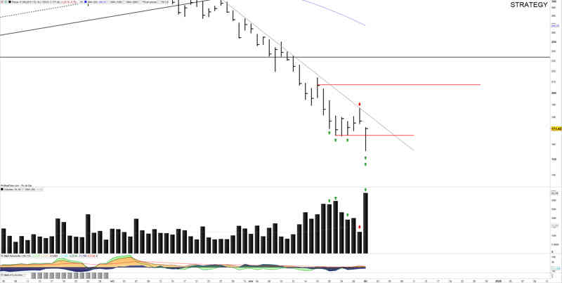 Sesión de menos a más, pasando de -11% a -3,25%, con cierre en máximos de sesión y un volumen ultraclimático.