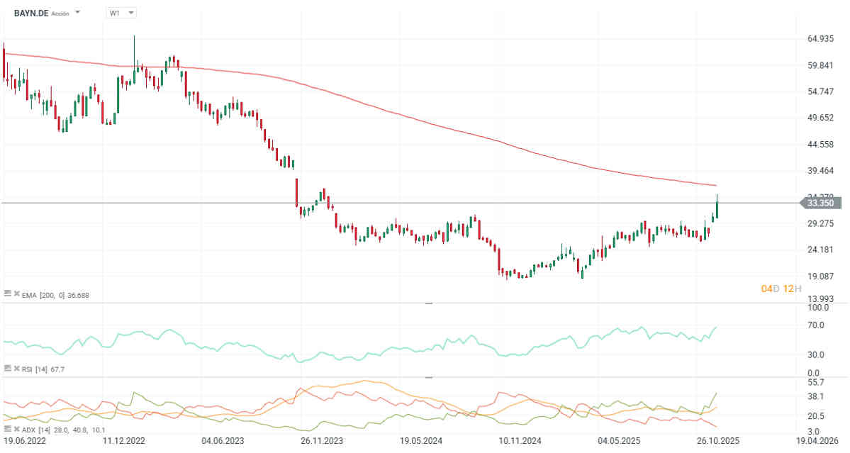 Tras la noticia, las acciones de Bayer repuntaron más de 4 euros, hasta 34,75 €, su mejor subida porcentual desde octubre de 2008. En lo que va de año, el título acumula un avance cercano al 80%, aunque continúa lejos de sus niveles anteriores a la compra de Monsanto.