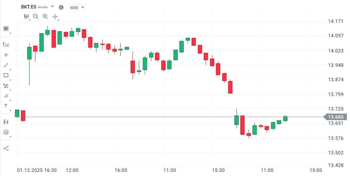 Bankinter viene de publicar unos niveles de capital CET1 muy holgados y de reforzar dividendo, lo que ha permitido una subida muy fuerte en el año, pero a la vez hace que cualquier señal de menor potencial o rebajas de recomendación se traduzcan rápidamente en recogida de beneficios. Las acciones de Bankinter bajan un 1,2% intradía mientras que durante el 2025 la entidad bancaria acumula una revalorización en bolsa del 80%.