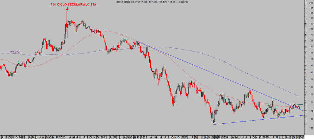 Los bond vigilantes han sufrido un mercado bajista salvaje de precios de la deuda americana en los últimos años, caídas del ~50% que han originado unas minusvalías históricas y tan abultadas que los bancos tuvieron que ser asistidos con una regulación ad hoc para no tener que aflorar los cerca de $600.000 millones de pérdidas siempre que esas posiciones fueran mantenidas a vencimiento.