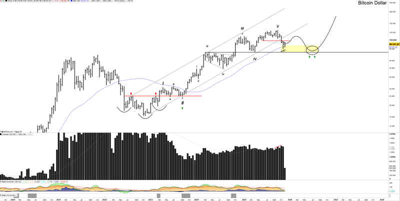 Veo difícil un impulso por encima de 110k, siendo esta la zona clave a testear para seguir bajando en forma C.