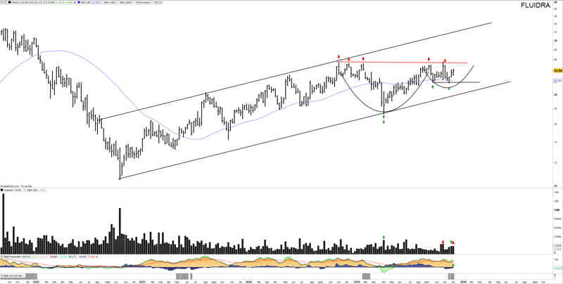 Potencial cup&handle, por encima de media de 50 semanas y con una estructura de fondo alcista.