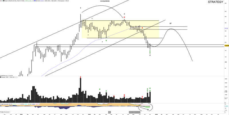 Sigo pensando en fin de A, un valor de riesgo peor muy interesante. Os subo también análisis de Bitcoin para enlazar situación, ya que están, obviamente, correlacionados.