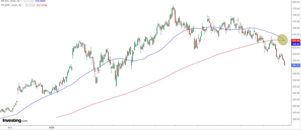 Es la primera vez que aparece desde enero del 2022. La última vez que surgió, las acciones cayeron un -69% durante los siguientes 10 meses.