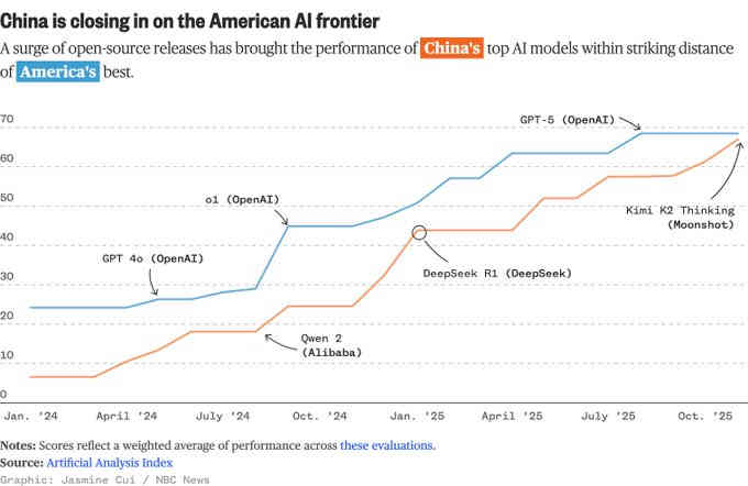 Toda la tesis de inversión que sustenta las gigantescas inversiones de las tecnológicas americanas depende de que los modelos cerrados sigan siendo significativamente mejores y los preferidos por el usuario final en todo el mundo, pero la brecha se está cerrando peligrosamente y a gran velocidad.