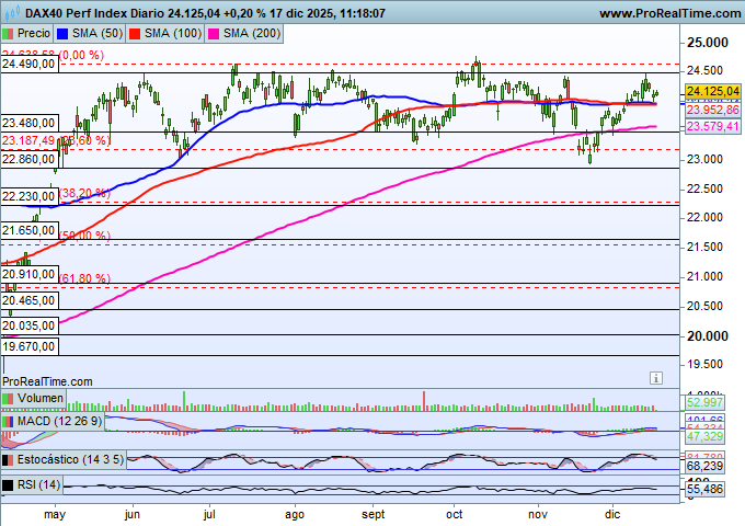 • Las Bolsas encaran un final de ejercicio incierto. Análisis IBEX35, DAX, SP500, Nasdaq, Santander y Mapfre 17 diciembre 2025