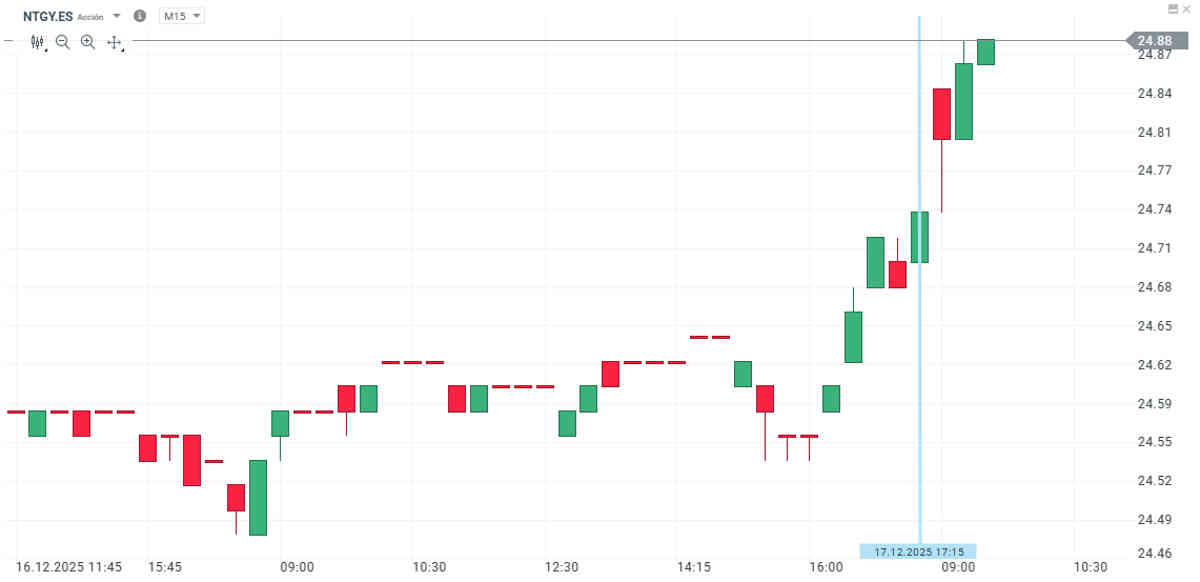 Las acciones de Naturgy suben un 1,4% en estos momentos. Durante el 2025, las acciones de Naturgy se revalorizan un 4%.