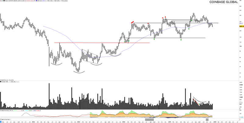 Ahora bien, del lado diario si hace cosas extrañas. Rango lateral con un claro HCH. Zona clave en 170$, y es clave entender que hasta que no la pierda no se puede proyectar nada.