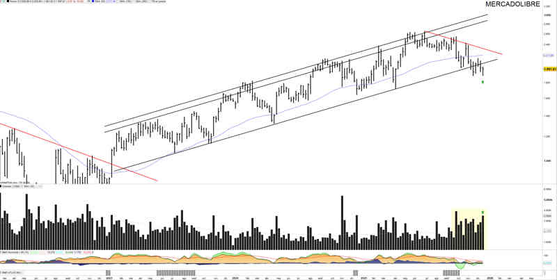 En la segunda imagen vemos el gráfico semanal, fijaros, volumen climático, en zona clave, con cierre casi en máximos, esta semana hubo compras.