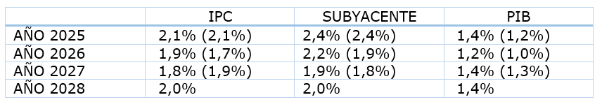 También, el BCE publicó su actualización de proyecciones de inflación y PIB hasta 2028, esperando que la inflación siga bajando gradualmente y se sitúe en torno al 2% entre 2025 y 2028, la inflación subyacente también aunque será algo más elevada al principio. La previsión de inflación para 2026 se ha revisado al alza por una desaceleración más lenta prevista para los precios de los servicios.
