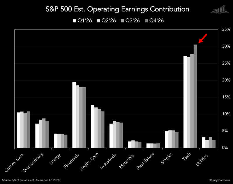 Aunque el resultado operativo del sector tecnológico está previsto que siga creciendo y aumentando su aportación al del conjunto del mercado (medido a través del SP500) hasta el 30% en los próximos 12 meses, los beneficios netos del sector aportan alrededor del 21% cuando el sector pondera un 32% del SP500.
