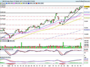 Tanto en la sesión del viernes como en la sesión de este lunes el IBEX35 ha respetado en todo momento la zona de 17060 puntos, por contra no pudo superar la zona de 17218 puntos, dejando además un pequeño máximo decreciente este lunes. A corto la situación no es preocupante y la subida libre se […]