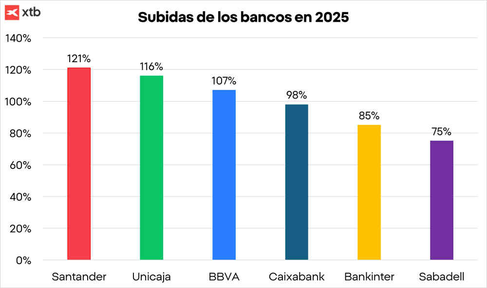 El resultado: una rentabilidad media del sector cercana al 100%, con Santander liderando el grupo con más de un 125% de subida.