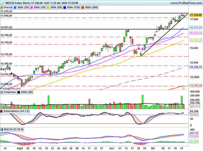 • IBEX35: Entre dos niveles importantes, los 17065 y 17218 puntos 23 diciembre 2025