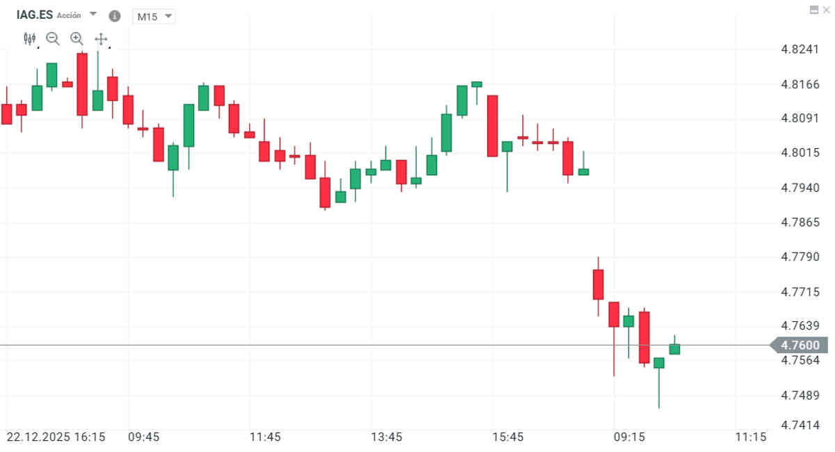 La acción de IAG baja 8 décimas en estos momentos mientras que en el conjunto del 2025 sube un 32% en bolsa.