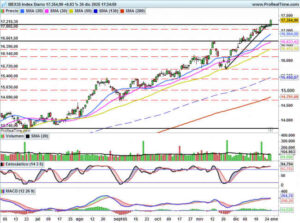 Nuevo movimiento alcista, esta vez por encima de 17218 lo que deja al IBEX35 en subida libre. Para corto plazo el único soporte fiable lo tendríamos en 17065 que fue el mínimo de esta ultima semana, solo si cierra por debajo se podría esperar corrección hacia 16660. Por arriba no se puede dar un objetivo […]