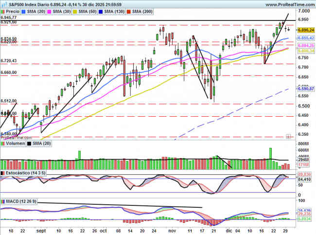 En caso de superar 6945 se cancelaría este escenario bajista y el índice entraría en subida libre.