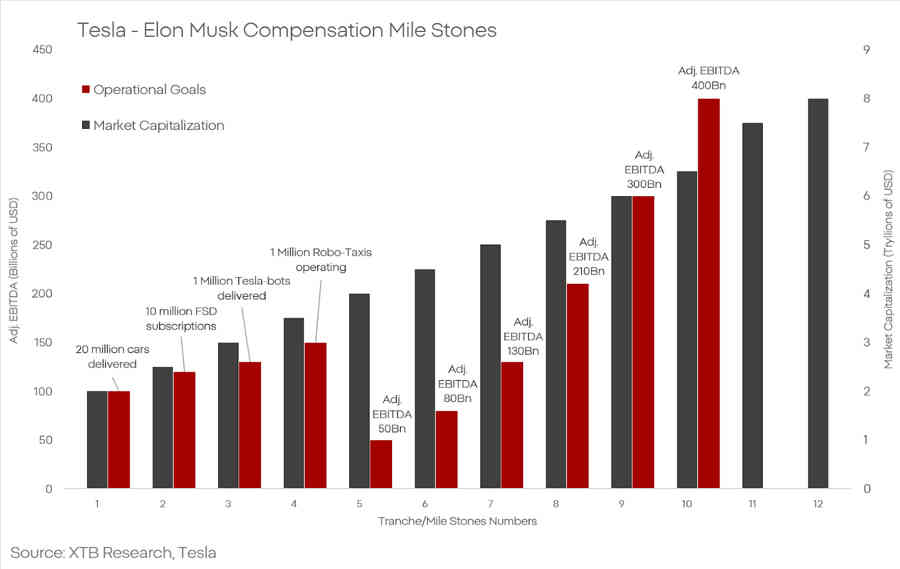 Tesla está tan lejos de cumplir los criterios para esa bonificación como Marte lo está de ser colonizado, algo que Musk promete lograr con su otra empresa, SpaceX, desde hace más de una década. El paquete de bonificación exige una capitalización de entre 2 y 8,5 billones de dólares. Esto implicaría un crecimiento real de entre 25 % y 530 %, asumiendo que se mantenga el actual —y extremo— múltiplo P/E de más de 300. Eso implicaría ingresos entre 122.000 millones y más de 510 mil millones, utilidades entre 8,5.000 millones y 37.000 millones, y un EBITDA entre 14,5 mil millones y 65 mil millones.