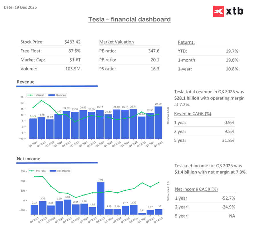 Las acciones de Tesla (TSLA:QQ) han alcanzado recientemente un nuevo máximo histórico, tras firmar un año muy turbulento en el que han visto cómo su valor se desplomaba solo para, posteriormente, recuperarse. Tras el final de 2024, la valoración de Tesla llegó a caer cerca de un 55%, aunque logró recuperarse en menos de medio año e, incluso, superarse.