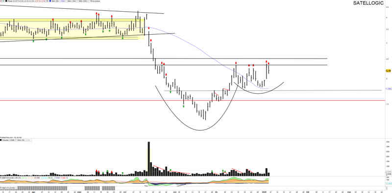Mirad el semanal. Consolida en forma cuña con ya comentado a,b,c en forma onda 4 dentro de onda 3 grado mayor.