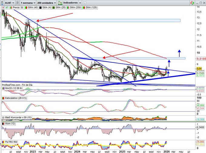 Ya más cerca de los 9€, y de la resistencia inicial en zona 9,50€, ayer tras apoyar en recorte muy técnicamente sobre la directriz alcista perforada, este activo promete en actuales credenciales técnico / fundamentales para desarrollo de potencial muy alcista de cara a ejercicio 2026.