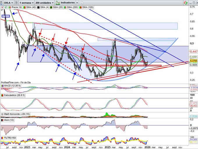 Perforando resistencia y entrando en zona marcada de control del activo certificando rebote para relanzamiento y proyección alcista nuevamente para intentar el rango resistencia clave, las directrices bajistas que marcarán más adelante un cambio significativo en su aspecto técnico de fondo. 2026 puede ser un gran año en clave técnico / fundamental ya determinante del lado alcista.