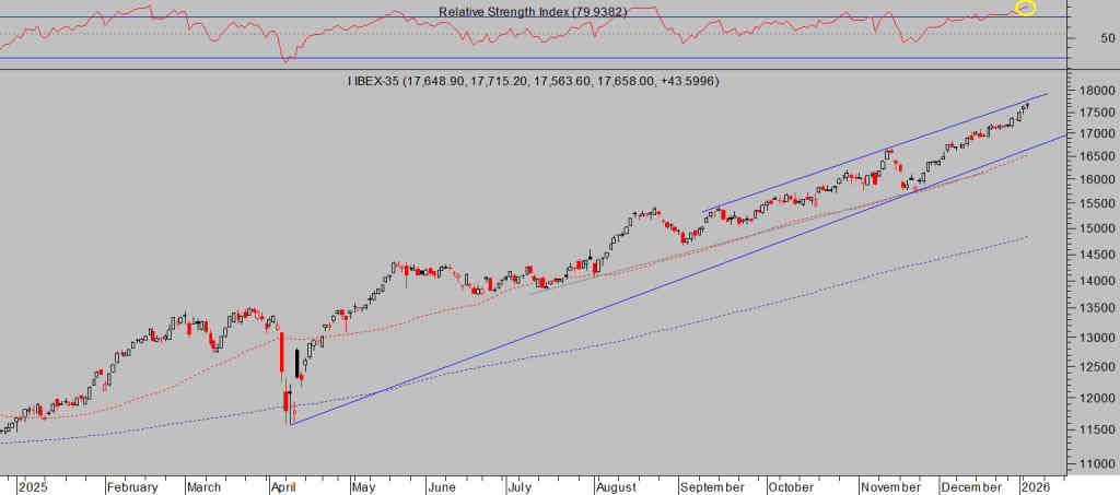 Las bolsas europeas también han abierto 2026 en modo celebración y continuando sin descanso con las alzas de las últimas semanas, aunque han alcanzado niveles técnicos que previsiblemente no conseguirá superar al menos en el más corto plazo.