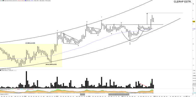 En base al gráfico de referencia (bisemanal), me esperaría visita a clavicular del cup&handle superada, pero recordad, estamos en impulso alcista L/P III.
