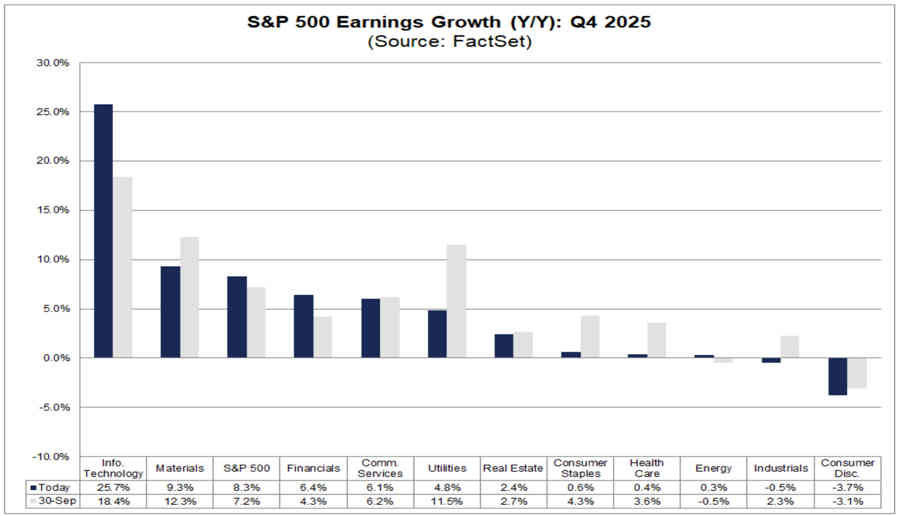 Este ciclo abarca el rendimiento de octubre a diciembre de 2025, en un contexto de resistencia de la economía estadounidense, inversiones continuadas impulsadas por la inteligencia artificial y cambios políticos emergentes bajo la nueva administración. En general, los analistas prevén un crecimiento sólido pero moderado en comparación con los trimestres anteriores, con posibilidades de sorpresas positivas.