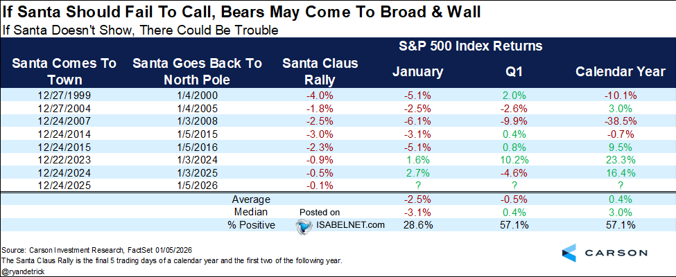 Además de que la rentabilidad anual sea más baja cuando Santa Claus no ha aparecido por las bolsas, por norma general el SP500 ha finalizado los meses de enero en tono negativo.