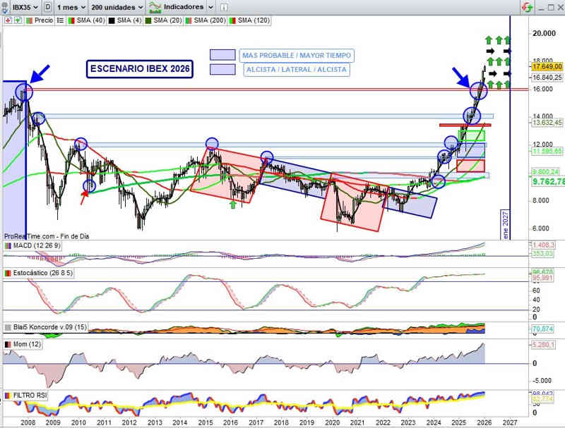 Credenciales técnicas para un escenario alcista lateral Alcista sobre el que pienso seguiremos viendo a lo largo del ejercicio 2026 nuevos máximos históricos.