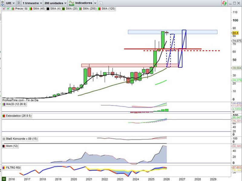 El Gráfico Trimestral es técnicamente un exponente del gran potencial del valor en estos momentos sobre expectativas de negocio comentadas ya en la tesis de inversión.