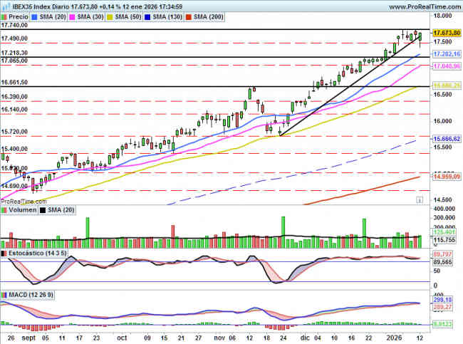 • IBEX35: Ruptura falsa en los 17490 puntos 13 enero 2026