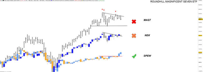 En la imagen tenemos MAG7 vs NDX vs SPEW, la estructura es muy diferente.