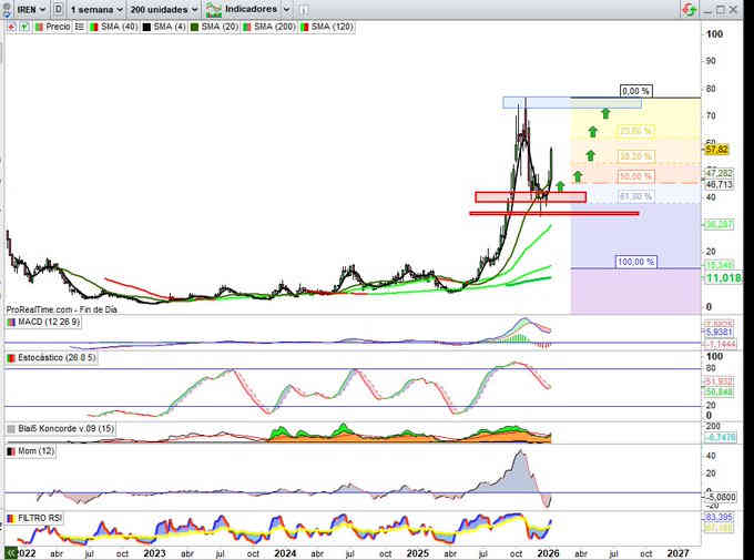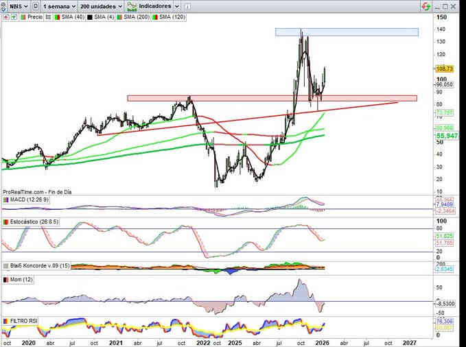 Sugiere técnicamente proyección nuevamente a la zona resistencia de sus máximos históricos, se parece mucho a IREN en estructura, ni que decir tiene en ese alto grado del factor volatilidad, por tanto el objetivo de proyección en la zona rango 135$ / 145$ va a ser clave por arriba. Ojo #GAP en zona 90,75$, hueco Alcista, justo sobre soporte en su zona más alta en la referencia del rango. Indicadores en señal compra y en favor de la tendencia y pendientes de Momentum. Y Bien en Mensual.